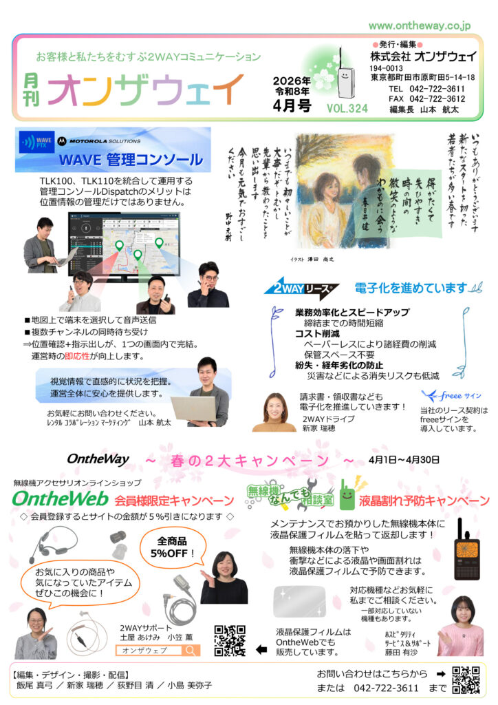 新年度を迎え、心あらたまる季節となりましたが、皆さま、お元気でお過ごしでしょうか。 今月はGPSによる位置管理と通信機能を統合した、WAVE PTX Dispatchをご紹介しています。 4月15日~17日に第5回 チーム運営支援EXPOに出展致します。東京...
