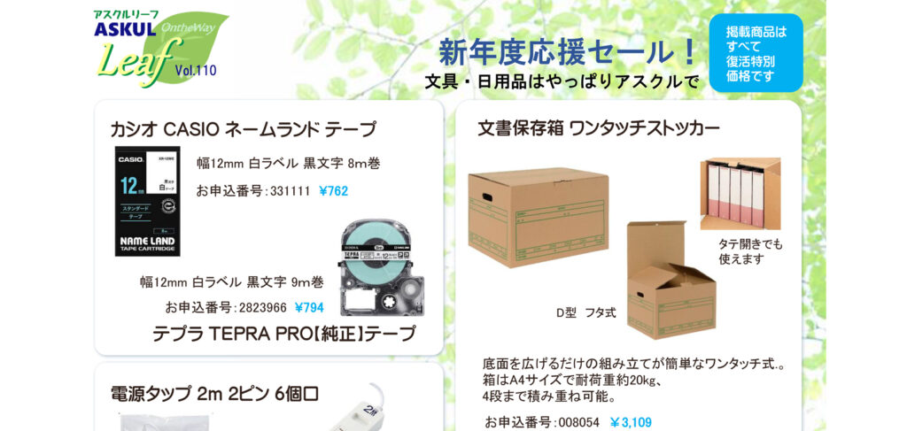 人事異動シーズンにお役立ち! アスクル復活感謝祭実施中!人気のオリジナル商品を最大20%OFFでご提供中!